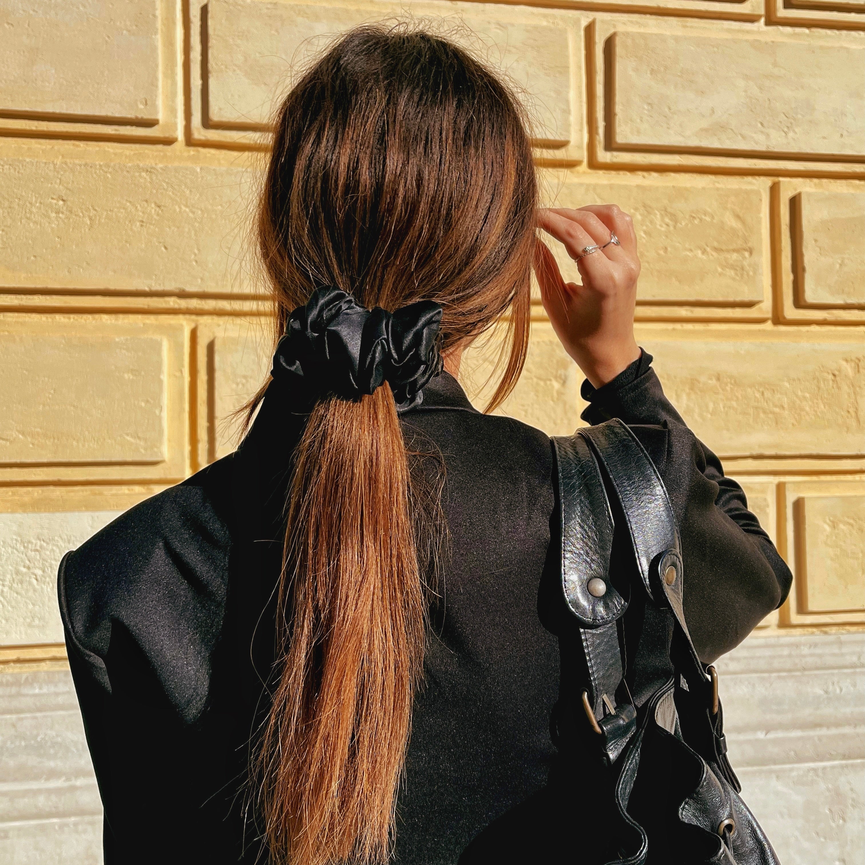 Le basic à avoir toujours avec soi : notre chouchou noir fin en soie pure qui n'abime pas les cheveux 🤩